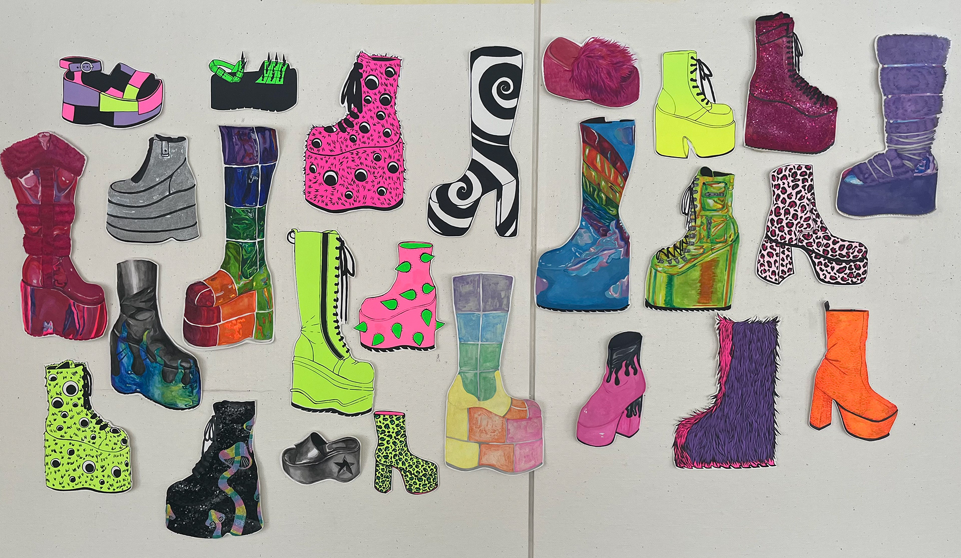 Gouache, Watercolor, Silkscreen, India Ink and Glitter